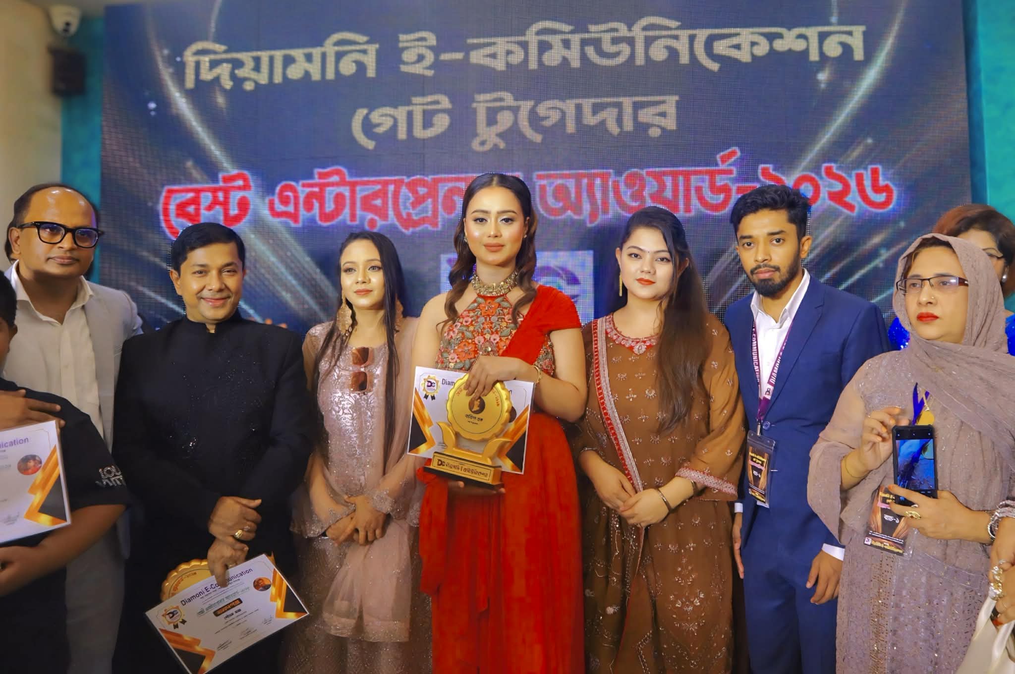 দিয়ামনি ই কমিউনিকেশন বেস্ট এন্টারপ্রেনার এ্যাওয়ার্ড ২০২৬ যাদেরকে প্রদান করা হয়- অভিনেত্রী ও নারী উদ্যোক্তা ক্যামেলিয়া নিশান, বেস্ট কাপল আবিদুল মোহাইমিন সাজিল, চলচ্চিত্র অভিনেত্রী শিরীন শিলা, বেস্ট ফ্যাশন কোরিওগ্রাফার গৌতম সাহা, শিশু শিল্পী আয়ান সাহা, ফ্যাশন ডিরেক্টর এডলফ খান, শিশু মডেল ও অভিনেতা আবধাহাম আরোহী, সংগীত শিল্পী তামান্না হকসহ আর বিভিন্ন সেক্টরে কাজ করা আলোকিত উদ্যোক্তাদের এই সম্মাননা প্রদান করা হয়।