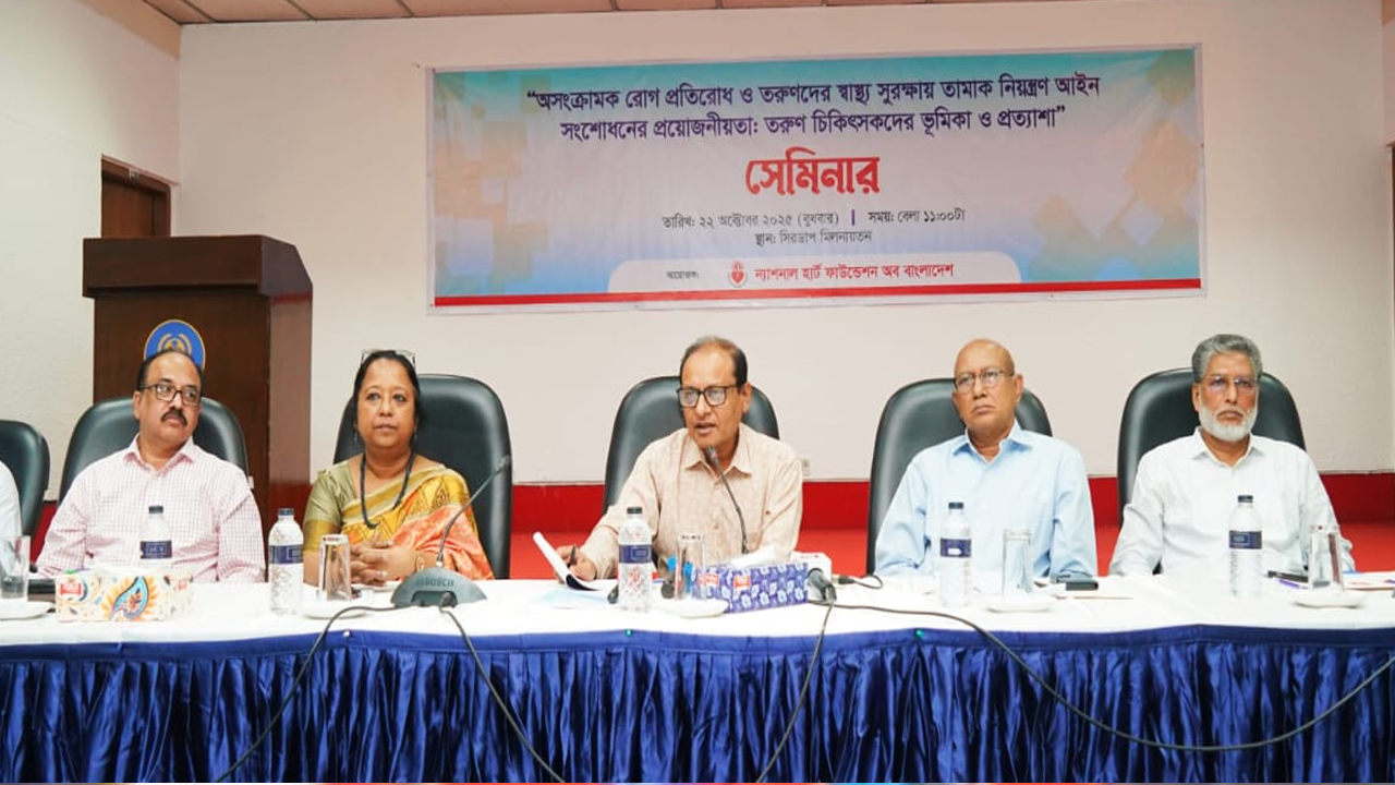 বুধবার ঢাকার সিরডাপ মিলনায়তনে ন্যাশনাল হার্ট ফাউন্ডেশন অব বাংলাদেশ আয়োজিত ‘অসংক্রামক রোগ প্রতিরোধ ও তরুণদের স্বাস্থ্য সুরক্ষায় তামাক নিয়ন্ত্রণ আইন সংশোধনের প্রয়োজনীয়তা: তরুণ চিকিৎসকদের ভূমিকা ও প্রত্যাশা’ শীর্ষক সেমিনারে প্রধান অতিথি হিসেবে বক্তৃতাকালে তিনি এ কথা বলেন।
